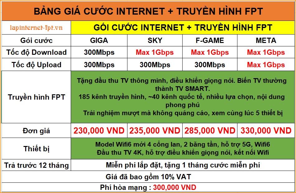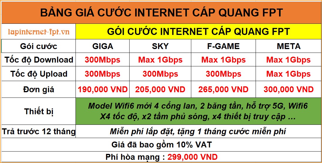 Gói Meta – 1Gbps, băng thông quốc tế mạnh: 300.000đ/tháng. Tốc độ cực cao, tối đa lên tới 1GBps cả tải lên và tải xuống, thích hợp cho hộ gia đình lớn, hộ kinh doanh cá thể, livestream, bán hàng online …