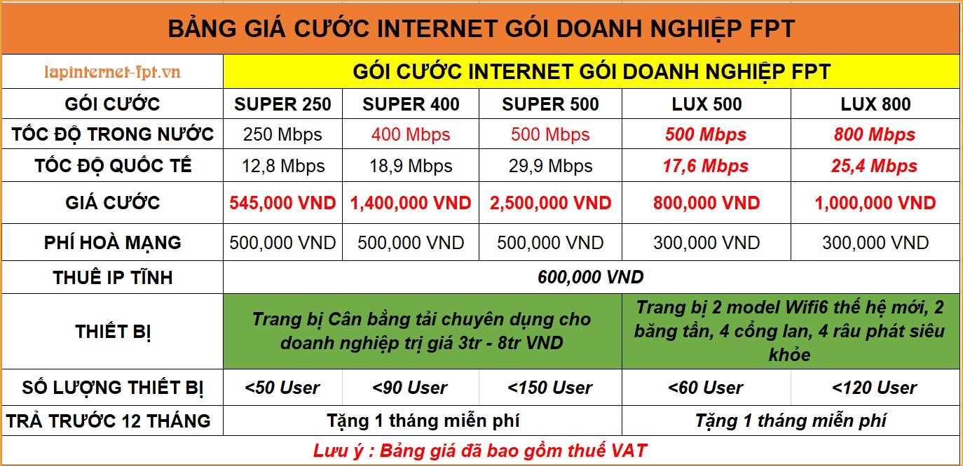 -Công ty đóng trước 12 tháng: Miễn phí lắp đặt + tặng miễn phí tháng 13 và thiết bị chuyên dùng