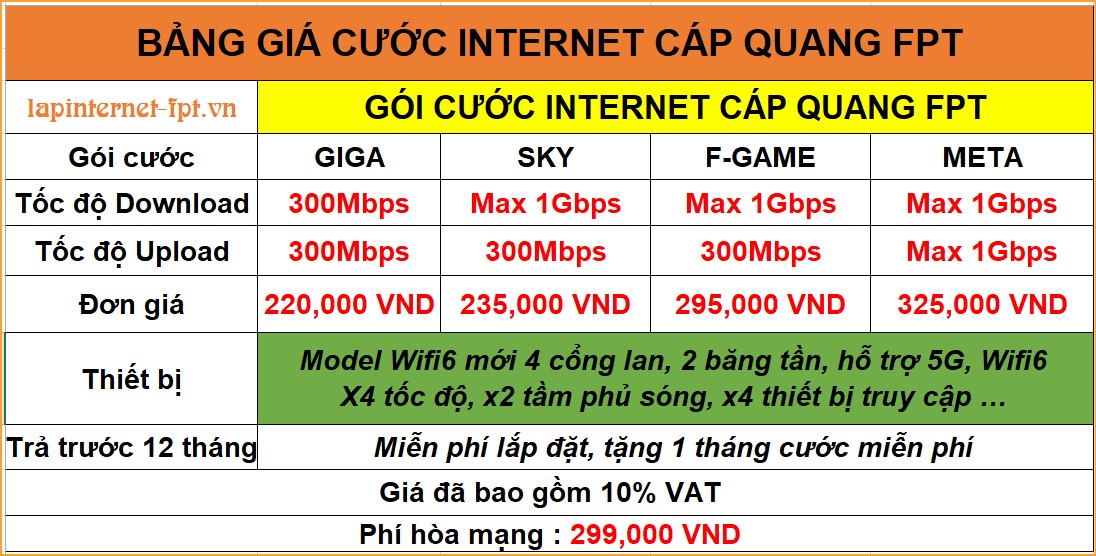FPT Telecom HCM hiện đã tung ra rất nhiều chương trình khuyến mãi để đáp ứng cho khách hàng muốn đăng ký lắp mạng FPT và sử dụng dịch vụ internet fpt tại địa bàn. Giá cước lắp mạng internet fpt Hồ Chí Minh đang được fpt telecom khuyến mãi hấp dẫn chỉ từ 220.000đ/tháng - 380.000đ/tháng cho các gói cước fpt từ 150 Mbps - 1024 Mbps để cho khách hàng lựa chọn lắp đặt internet cho hộ gia đình